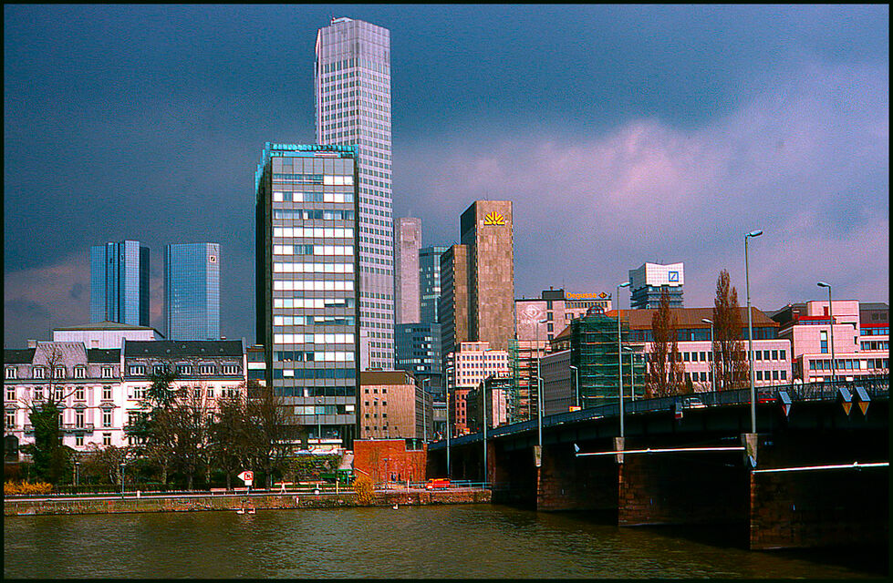 Frankfurt har Tysklands största flygplats. Kriget lade staden i ruiner, men återuppbyggnaden efter 1945 var förvånansvärt snabb och effektiv. Ur ruinerna skapade man en modern, dynamisk metropol. Frankfurt är det moderna Tysklands finanshuvudstad.